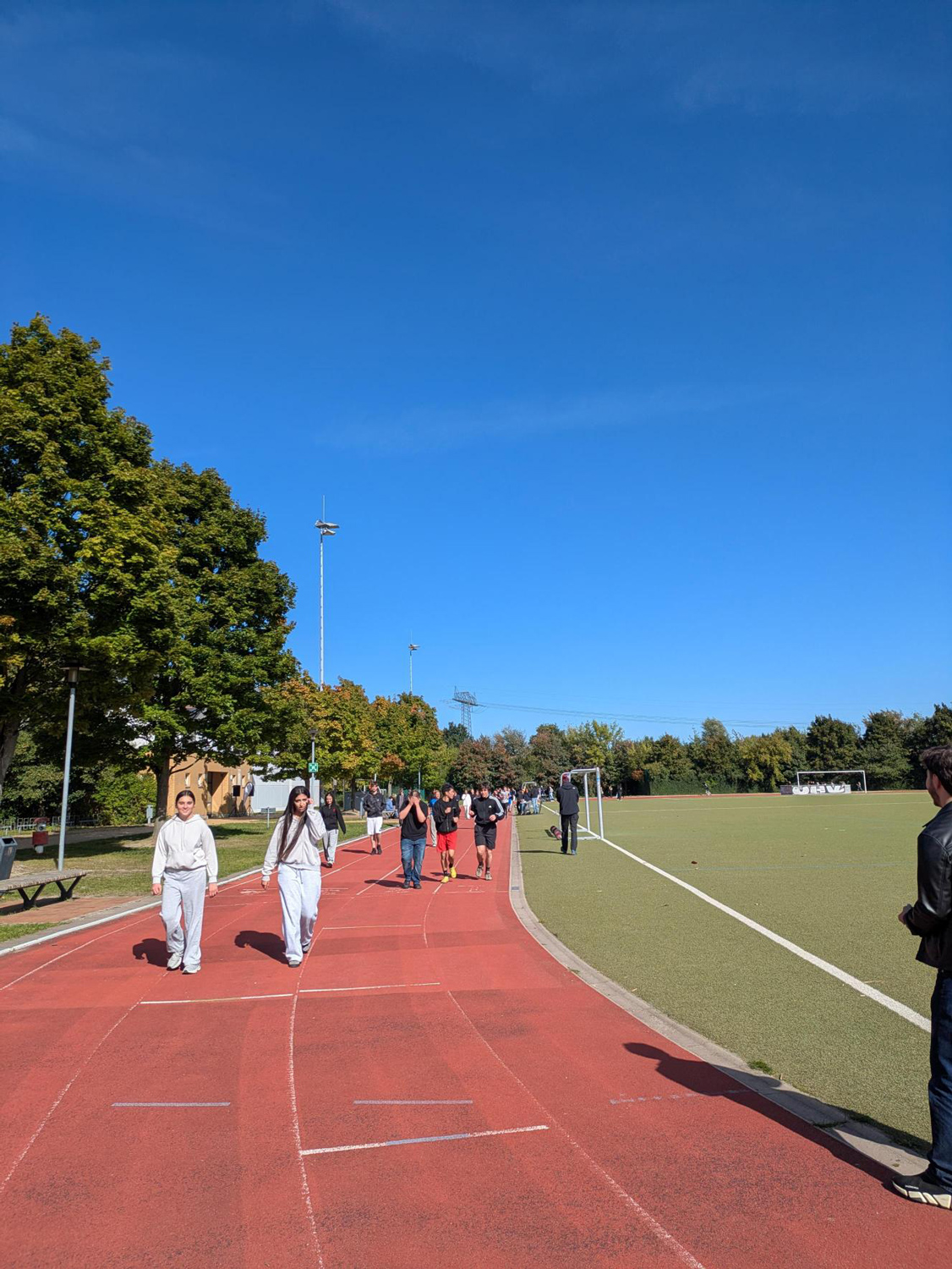 Am darauffolgenden Tag, dem 25. September, fand bei strahlendem Sonnenschein unser Spendenlauf, der „Teppichlauf“, statt. Das gute Wetter beflügelte alle Läuferinnen und Läufer zu Höchstleistungen. Ein riesiges Dankeschön gilt an dieser Stelle auch den fleißigen Helferinnen und Helfern beim Kuchenbasar und Getränkeverkauf: Marie, Samy, Jason und Maurice (alle aus der 9.21) sowie Lea (10.21). Euer Einsatz war spitze!