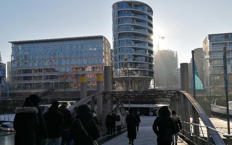 Anschließend erkundeten die Schülerinnen und Schüler im Rahmen einer Siedlungsexkursion verschiedene Facetten der Stadt, sowohl vom Bus aus als auch bei einer Fahrt auf dem Wasser. Ein weiterer thematischer Schwerpunkt lag auf der HafenCity, wo eine Führung die Aspekte der Nachhaltigkeit in diesem modernen Stadtteil beleuchtete.